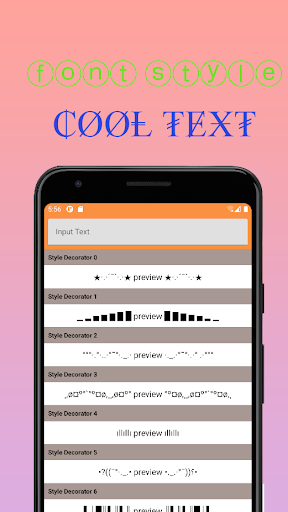 ফন্ট স্টাইল একটি সুবিধাজনক অ্যাপ্লিকেশন যা সাধারণ সামগ্রীটি বিভিন্ন ধারালো শীতল কন্টেন্ট রূপান্তর করতে সহায়তা করে, এই লাইনগুলির সাথে এটি শীতল চিত্র এবং অসাধারণ পাঠ্য শৈলী সহ পাঠ্য করে।