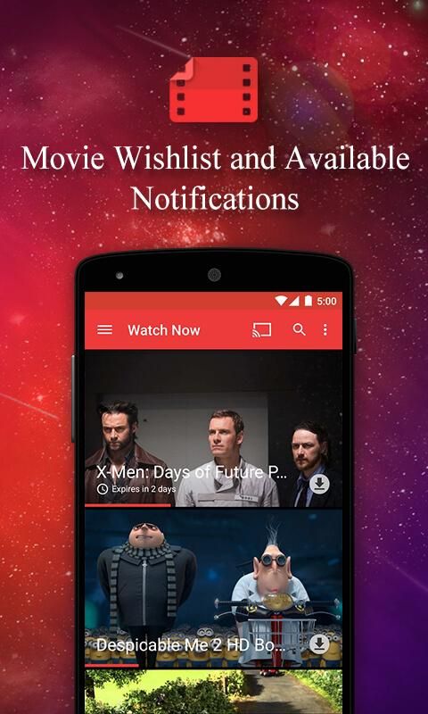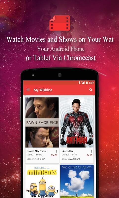 Watch your favorite movies and shows instantly on your Android phone or tablet, or on any HDTV using Chromecast. You can also download and watch from anywhere, even when you're not connected. If the movie you're looking for isn't yet offered, wishlist it and get a notification when it's available to buy or rent.