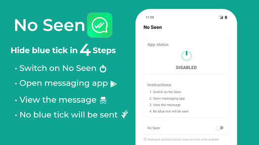 (কোনও দেখা যায় না: নীল টিকিট) আপনাকে কোনও শেষ দেখা এবং নীল টিক চিহ্ন ছাড়াই আপনার বন্ধুর ইনকামিং বার্তাগুলি পড়তে সহায়তা করে। এই লুকান ব্লু টিক অ্যাপ্লিকেশনটিতে স্যুইচ করার পরে, আপনি অদৃশ্য বার্তা পড়তে পারেন। সোশ্যাল মিডিয়া অ্যাপের জন্য ছদ্মবেশী চ্যাট রিডারের জন্য সর্বশেষ দেখা হাইডার হিসাবে নীল টিক্টগুলি লুকান।