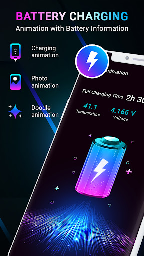 চার্জিং শো - চার্জিং অ্যানিমেশন স্বয়ংক্রিয়ভাবে প্রদর্শিত হয়। চার্জিং তারের সাথে সংযোগ করার পরে, ম্যানুয়ালি অ্যাপ্লিকেশনটি খুলতে হবে না এবং চার্জিং অ্যানিমেশনটি অবিলম্বে ফোন স্ক্রীনে প্রদর্শিত হয়।