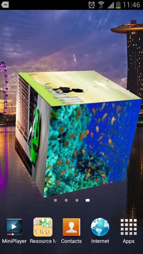 Usage:Menu->Wallpaper->Live Wallpapers->3D Photo Cube Live Wallpaper