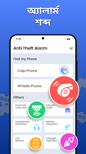 . ফোনের চুরি বিরোধী অ্যালার্ম এবং অ্যালার্ম সিস্টেমের কারণে এখন কেউ আপনার ফোন চুরি করতে পারবে না। যখন কেউ আপনার ফোন এবং চুরি করা মোবাইল ফোন স্পর্শ করার চেষ্টা করে, তখন একটি চুরি বিরোধী সাইরেন অ্যালার্ম শুরু হবে এবং আপনি আপনার ফোনটি সংরক্ষণ করতে পারবেন। এই অ্যাপটি ব্যবহারকারীকে মোবাইল ফোনে চুরি-বিরোধী অভিজ্ঞতা দেয়