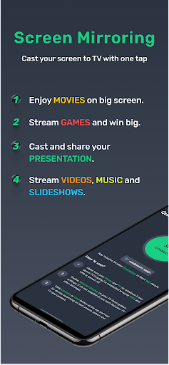 Fire Tv: The support for the Fire Tv in the television is rare. and finding an app for the fire tv casting is harder. Screen mirroring - Cast to Tv do not missed any solution of screecast and screen sharing. 1 Tap connect to your FireTv and enjoy Movies on big screens.