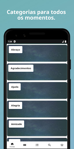 Além disso o aplicativo possui outras categorias para você usar diariamente em suas fotos e status, como frases de amor, reflexões, motivacionais, bom dia, boa tarde e boa noite e você poderá copiar, compartilhar e criar imagens com frases usando suas fotos favoritas, sendo possível compartilhar no Instagram, Facebook, status para WhatsApp.