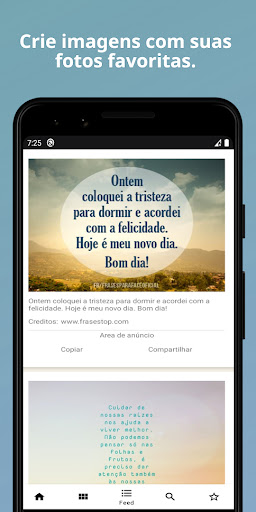 • Compartilha frases e imagens para WhatsApp, Facebook e Instagram.