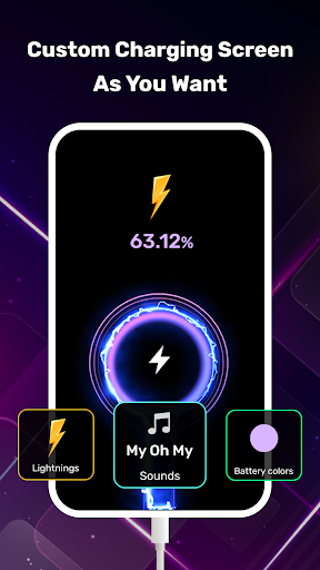 🌟Battery charging animation app also allows you to customize your charging screen as you want. Known as a personalizable charging show - animation app, with our charging play & charging app, you can: Freely choose to charge background and abundant progress icons; Easily setting the color of battery number; Apply multiple funny charging sounds, and Customize charging screen off.