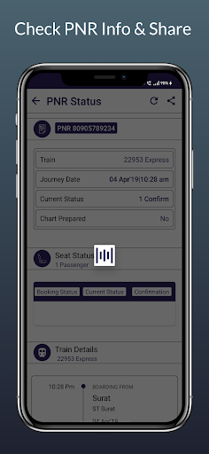 এই অ্যাপ্লিকেশনটি তৃতীয় পক্ষের ওয়েবসাইটগুলিতে উপলব্ধ জনসাধারণের তথ্যগুলিতে নির্ভর করে। এই অ্যাপ্লিকেশনটি ভারতীয় রেলওয়েগুলির সাথে সম্বন্ধযুক্ত নয়।