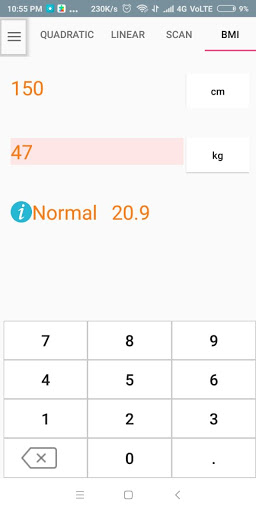 The Calculator include Scientific ,Quadratic , Linear Equations and BMI .