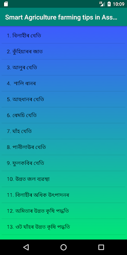 This app include ,why a farmer face ,the difference between difficult and impossible problem in agriculture sector with the climate changes .Agriculture farming encompass a broad multidisciplinary field of biological-based natural, economic, and social sciences .This points are used in the practice of agriculture involves the study of the science and technology underlying the principles and practices of agriculture in Assamese.This app contains mart Agriculture farming tips .