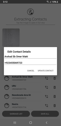 - Saves multiple Contacts from an Image.