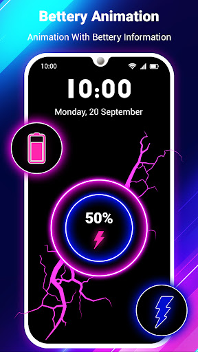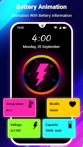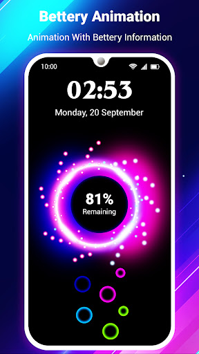 The fast-charging animation theme provides information about battery health, battery temperature, voltage, etc. Even more, you can customize your full-screen battery charging animation. When the connect charging then phone charging animation screen shows charging animation lock screen on your phone.