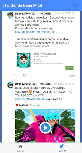 Hola! Soy Bebe Milo! Soy un Youtuber que sube 2 vídeos diarios de Minecraft! Tenemos muchas aventuras con mis amigos y nos divertimos mucho! Si quieres ser parte de esta familia de 2.000.000 bebecitos, no tienes que hacer mas que suscribirte al canal y tener la app siempre en tu móvil! No te pierdas ningún video, no olvides suscribirte, darle like y comentar!!