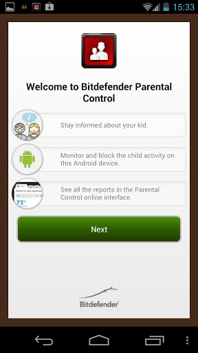 Bitdefender Parental Control for Android is a key part for Parental Control suite. The Bitdefender Parental Control needs to be installed on your childs mobile phone. To use Bitdefender Parental Control, you must link your device to a MyBitdefender account by logging in to the account from the app. If you dont have an account, choose to create a new account using the corresponding button.As a parent, you can see all the reports and create blocking rules in the Parental Control online interface. You just have to login to this page: http:bit.lyM7H6xK with your MyBitdefender credentials, and to create a profile for your little one.To link your device to a MyBitdefender account, follow these steps:1. Enter your MyBitdefender user name and password. Optionally, you may also enter a name for your device. If you link more than one device to your account, this will help you identify the devices more easily.2. Tap Signin.3. You will be prompted to give the application administrator rights on the device.4. Tap Accept to finish the installation.Features:Webpages and apps blocking amp; monitoring: Because you cant be there 247, Bitdefender Parental Control allows you to see what sites your kids visit online, as well as what apps they are using. It also allows you to create a block apps andor website , so youll know your kids will be safeguarded while on the Web.SMS and calls blocking amp; monitoring: With Bitdefender Parental Control, you have the ability to block suspicious contacts on your kids mobile devices, in addition to monitoring all incoming and outgoing SMS and calls..Time limiter: Bitdefender Parental Control allows browsing only during the hours set by you.To learn more about how to protect your kids from digital threats, please log in to your Mybitdefender account: http:bit.lyM7H6xK or create an account if you don39;t already have one.Use Bitdefender Parental Control to block content that may be offensive or inappropriate for your kids, restrict Web access between customset hours, and remotely monitor all online activity even on Facebook.Keywords:parental control, internet monitor, website blocker, apps blocker, internet filter monitoring software, location tracker, internet monitoring software, child control, internet filtering, child safety, chat monitoring, time limiter, sms blocking, phone number blocking, caller id blocking.