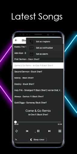 এই অ্যাপ্লিকেশনটিতে কালো শেরিফের কয়েকটি গান হ'ল: