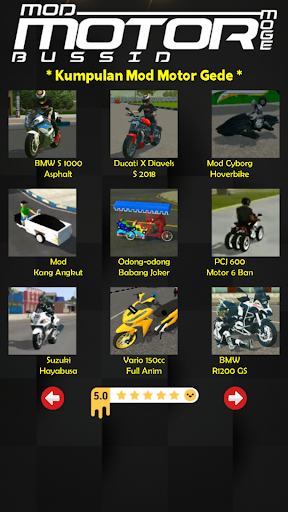 একটি শীতল মোটর মোডের সাথে বুসিড খেলতে চান? শীতল মোটর মোডগুলি ডাউনলোড করতে অ্যাপ্লিকেশনটি জানতে চান? এই অ্যাপ্লিকেশনটি আপনি খুঁজছেন। এই অ্যাপ্লিকেশনটিতে আপনার জন্য দুর্দান্ততম বড় মোটরবাইক মোড মোটরবাইক রয়েছে। আপনি আপনার বুসিড গেমটিতে খেলতে পারেন এমন অনেকগুলি দুর্দান্ত মোজ মোজ মোড রয়েছে