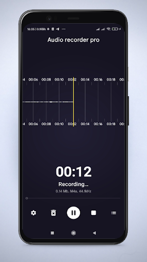 Audio Recorder Pro is an audio recording and playback app that offers two recording formats: M4A and Waveform Audio File Format (WAVE , or WAV). In settings, you can set the sample rate and bitrate (for AAC only), as well as select between mono and stereo. These preferences directly affect the file size of the recordings.