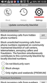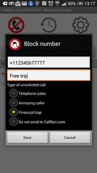 CallBan.com is a community call blocker. The application blocks unwanted, unsolicited or dangerous calls and helps manage a local blacklist. The main difference when comparing to other regular call blockers is the shared community blacklist. This community blacklist is built using previous bad experiences submitted by community users. When a phone number is reported several times by several different users, it is added to the community blacklist and then automatically blocked on all the rest of the community phones. It is very simple and effective.The application works automatically in the background, so you do not need configure or setup anything. Simply install the application, download the community blacklist and you are immediately protected. If you are looking for a call blocker which works with a minimum of manual effort and blocks the majority of unsolicited calls, this application is what you need. Block phone sales calls on your mobile once and for all!