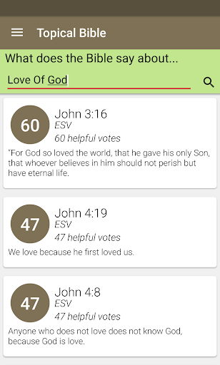 -Don't just memorize what you know, find ALL that the Bible has to say with the Topical Bible search. Enter a word or phrase and get as many as 100 relevant verses curated from the Topical Bible at OpenBible.info.