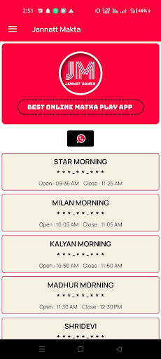 জান্নাত মাতকা গেম অ্যাপ্লিকেশন থেকে আপনাকে স্বাগতম।আমাদের অ্যাপ্লিকেশনটিতে আপনি অল ইন্ডিয়া অফিসিয়াল ম্যাটকা বাজারে অনলাইন গেম খেলতে পারেন এবং বিভিন্ন ম্যাটকা বাজারের অর্থাত্ কল্যাণ মাতকা, রাজধানী মাতকা, মিলান মাতকা, সুপ্রিম মাতকা, মাধুর মাতকা, শ্রীদেবী মাতকা, সময় বাজর মাতকা, মূল বাজারের জন্য লাইভ ফলাফলের আপডেট দেখতে পারেন।