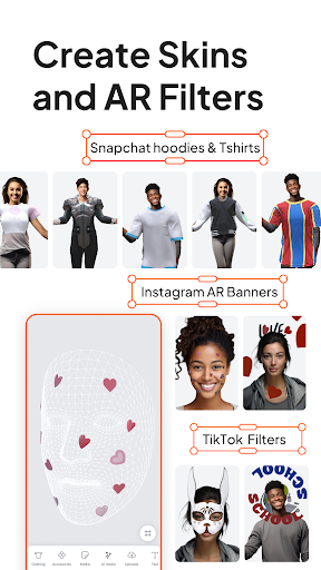 3 ডি স্রষ্টাদের ক্রমবর্ধমান সম্প্রদায়ের সাথে যোগ দিন!রোব্লক্স, জেপেটো, স্ন্যাপচ্যাট এবং আরও অনেক কিছুতে আপনার ডিজাইনগুলি কাস্টমাইজ এবং প্রকাশের জন্য কাস্টমজ আপনার সহজেই ব্যবহারযোগ্য অ্যাপ্লিকেশন।গেমগুলির জন্য অবিশ্বাস্য স্কিন এবং পোশাক তৈরি করুন, অনন্য এআর সাজসজ্জা ডিজাইন করুন & amp;আরও অনেক!