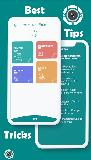 একটি লুকানো ক্যামেরা ডিটেক্টর হোটেলের মত শয়নকক্ষ, বাথরুমের বিভিন্ন স্থানে সমস্ত গুপ্তচর ক্যামেরা বা লুকানো ক্যামেরা এবং লুকানো ডিভাইসগুলি খুঁজে বের করে, বাথরুমে, কক্ষ পরিবর্তন. আপনি যদি আপনার পরিবারের সাথে এক শহর থেকে অন্য শহরে স্থানান্তরিত হন এবং একটি হোটেলে থাকতে চান তবে হোটেল রুমের ভিতরে একটি লুকানো গুপ্তচর ক্যামেরা হতে পারে যা আপনাকে এবং আপনার পরিবারের গোপনীয়তাটিকে বিরক্ত করে। আপনি আপনার মোবাইল ফোনে এই গুপ্তচর ক্যামেরা ডিটেক্টর অ্যাপ্লিকেশনটি ব্যবহার করতে পারেন। এই লুকানো ক্যামেরা অ্যাপ্লিকেশন আপনাকে একটি গুপ্তচর ক্যামেরা খুঁজে পেতে সহায়তা করে।