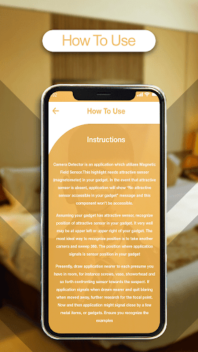 The hidden camera detector app protects you from spy cameras. If you are out of the city you stay at the hotel with family so for privacy you need such hidden camera detection and hidden microphone detector app through which you can discover Use your smartphone and hidden camera finder and spy Hidden camera app and bring it close to any device that you have a doubt on it.