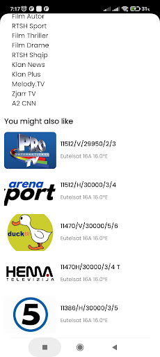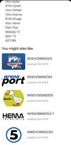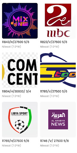 - Application provide following satellites channel list frequency