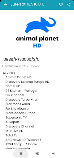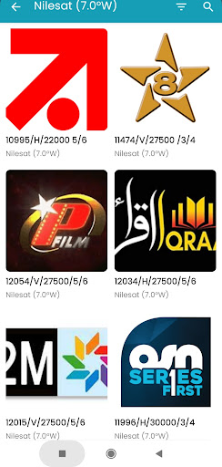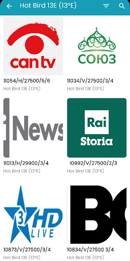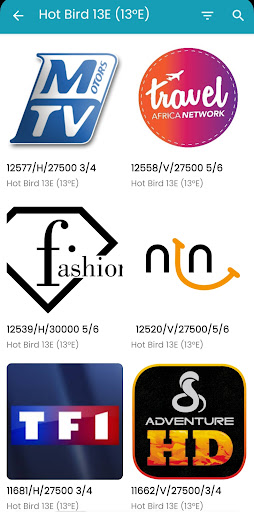 The channels are organized by frequency, making it simple to find any TV or radio channel's information on the satellite app.
