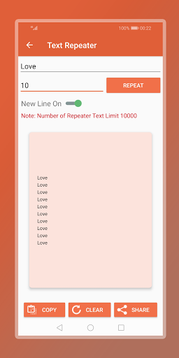 - Text Repeater: Gives you better option to repeat text as per needs. Text Repeater support Emoticons and special text for repeating.