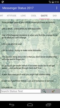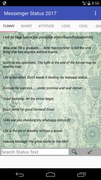 Contains latest great quotes, sentences, jokes which are suitable for the status for Messenger (IM) application like: