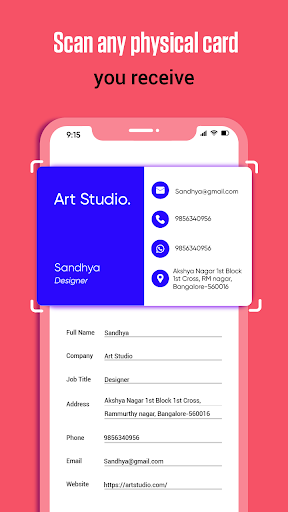- স্ক্যান - আপনি এই OCR এর ব্যবহার করে ব্যবসা কার্ড স্ক্যান করুন কার্ড রিডার অ্যাপটি ব্যবহার করে এটি ব্যবসা কার্ডের সংগঠক হিসাবে কাজ করে - এক্সপোর্ট - এক্সপোর্ট - আপনার পরিচিতিগুলি রপ্তানি করুন গুগল, আউটলুক, আপনার ফোন এবং এক্সেল
