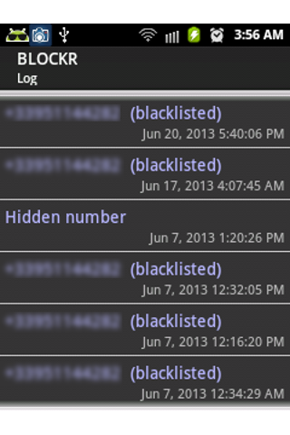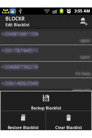 - You can backup/restore your blacklist and/or blocked calls log to/from your phone SD card.