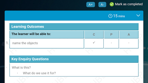 পাঠ্য পরিকল্পনা অ্যাক্সেস করার জন্য প্রাক্কলনের জন্য ইন্টারেক্টিভ শিক্ষক অ্যাপ্লিকেশন যেখানে শেখার সম্পদ এবং মূল্যায়ন ট্যাগ করা হয়