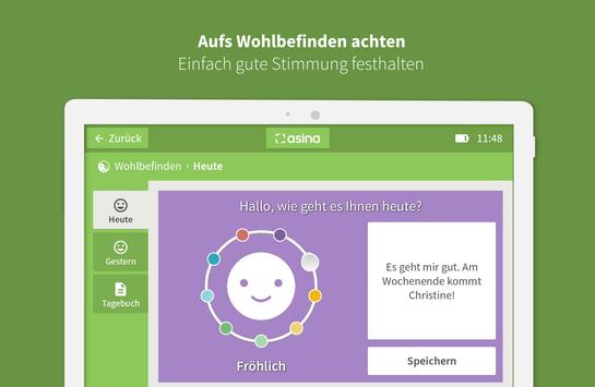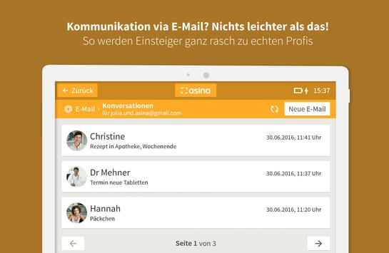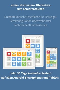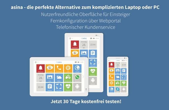 testen. Probieren Sie die einfache Oberfläche ganz bequem auf jedem beliebigen Android-Smartphone oder Tablet aus. Testen Sie auch die Fernkonfiguration über das asina Webportal. Zeigen Sie es Ihren Eltern oder Großeltern.
