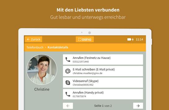 Die kostenfreie asina Oberfläche auf dem Android-Gerät bietet