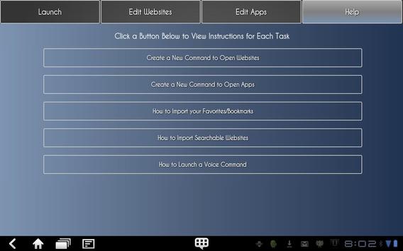Sick of searching for your apps on screens cluttered full of icons? Same goes for launching and searching websites? Just call them by name. Search websites such as Ebay, YouTube, Yahoo, Wikipedia, Twitter, Amazon, Netflix, Trip Advisor and many more simply by speaking a voice search command. Import favorite websites and use voice search to open and search them as well. Lead Vocal provides a central location that allows you to to open any app or open and search websites via voice command, eliminating time spent searching through multiple screens looking for apps and removes the need to open a browser and type a website address. Simply say the word and the app or website appears. Voice recognition is not perfect for many reasons, so choosing one command for your favorite apps and websites drastically reduces opportunities for error in voice recognition. In addition, Lead Vocal comes pre-installed with commands to open many of the most popular websites, but most importantly, it allows you to search them by voice as well. Simply say the command and what you are looking for, and Lead Vocal takes you directly to the website with the search already completed.