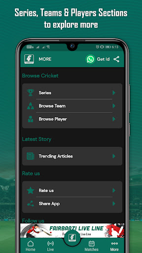 আপনি এই অ্যাপ্লিকেশনটির সাথে একটি বিনামূল্যে ক্রিকেট লাইন পান।