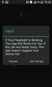 easy you should just click on Test flash if the flash works on your phone you will notice an alert says : if your flashlight is working , this app will work for you , if not we are really