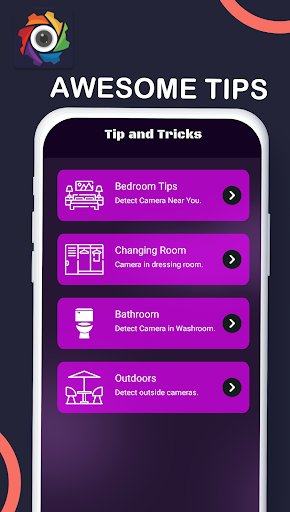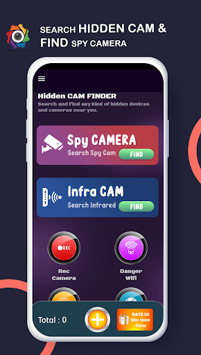 আপনি যদি কোনও শহর থেকে অন্য শহরে স্থানান্তরিত হন তবে আমাদের লুকানো ক্যামেরা ফাইন্ডার আপনাকে সমস্ত ধরণের গোপন ক্যামেরাগুলি সন্ধান করতে সহায়তা করবে। এই লুকানো ক্যামেরা ডিটেক্টর অ্যাপ্লিকেশনটি তার ব্যবহারকারীদের কেবল একটি অ্যান্ড্রয়েড ফোন ব্যবহার করে লুকানো ক্যামেরা এবং মাইক্রোফোন সনাক্ত করতে দেয়। এই ক্যামেরা সিমুলেটর অ্যাপটি এটি সনাক্ত করে যে এটি লুকানো ডিভাইসগুলি সহজেই ক্যামেরা, বাগ, ধাতু, মাইক্রোফোন এবং গ্লিন্ট সনাক্ত করে।