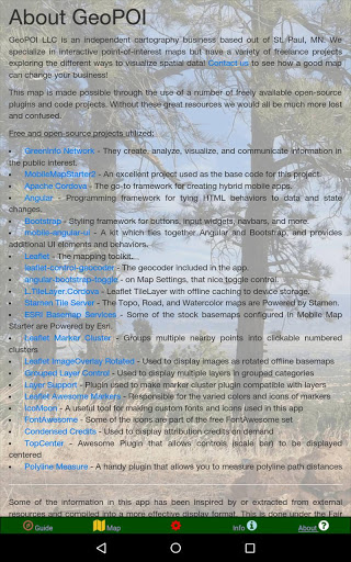 জিওপিও এলএলসি একটি ছোট, পৃথকভাবে মালিকানাধীন কার্টোগ্রাফি, মিনেসোটা থেকে ভিত্তি করে একটি ছোট, স্বতন্ত্র মালিকানাধীন কার্টোগ্রাফি। যাত্রীদের এবং স্থানীয়দের একইভাবে একটি অমূল্য হাতিয়ার করার জন্য এই অ্যাপ্লিকেশনের একটি অপরিমেয় পরিমাণ এবং প্রচেষ্টার মধ্যে চলে গেছে। এই অ্যাপ্লিকেশনটি ক্রয় করে, আপনি মূলত আমাদের প্রচেষ্টাকে জ্বালিয়ে দেওয়ার জন্য আমাদের একটি পানীয় কিনছেন এবং এটির মতো মানের অ্যাপ্লিকেশানগুলি অন্যান্য রাজ্যের জন্য ভবিষ্যতে তৈরি করা হবে। আপনার সমর্থনের জন্য ধন্যবাদ! এটি কেনার আগে আপনি অ্যাপ্লিকেশনের বিন্যাস এবং অ্যাপ্লিকেশনের বিন্যাসের জন্য একটি অনুভূতি পেতে চান তবে https://play.google.com/store/apps/developer?ard=geopoi+llc এ আমার অন্য কিছু বিনামূল্যের অ্যাপ্লিকেশানগুলি দেখুন। BR>