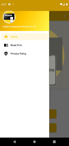 এইচডিএমআই সংযোগকারী ফোন এবং টিভিটি অ্যান্ড্রয়েড ফোনের জন্য একটি সংযোগকারী যা এই অ্যাপ্লিকেশনটির সাথে আপনার ফোনটি আপনার ফোনটি দ্বিতীয় স্ক্রীন তৈরি করতে একটি HDMI বা MHL বা VGA কেবল।