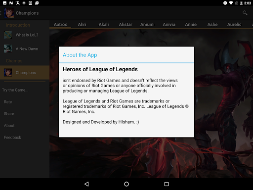 এই অ্যাপটি কিংবদন্তী লীগের প্রতি চ্যাম্পিয়নের মৌলিক তথ্য!