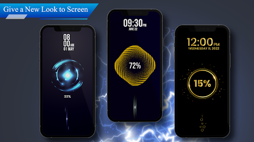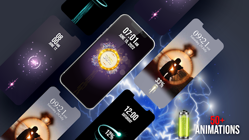 প্রদর্শন উজ্জ্বল চার্জিং লক স্ক্রীনে শো। অত্যাশ্চর্য, ব্যার্থতার অ্যানিমেশন পান - ব্যাটারি উইজেট পর্দা