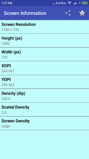এই অ্যাপ্লিকেশনটি তথ্য দেয়: * স্ক্রিন রেজোলিউশন * স্ক্রিন উচ্চতা * স্ক্রিন প্রস্থ * স্ক্রিন এক্সডিপিআই * স্ক্রিন ইউডিপিআই * স্ক্রিন ডায়াটিন ডিআইপি * স্কেল ডায়াটিন * স্ক্রিন ঘনত্ব আপনার কোন আপডেটের প্রয়োজন হলে আমাদের জানান।