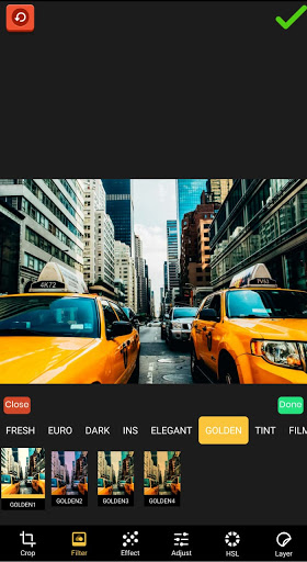 Apply advanced Photo filters to change the overall look of your images. This advanced Photo editing app provides you with unlimited free photo filters like Duo, Fresh, Euro, Elegant, Golden, Tint, Film, Retro, and many more.