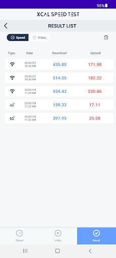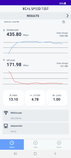 * স্পিড টেস্ট পরিমাপ -নেটওয়ার্ক স্ট্যাটাস এবং স্পিড টেস্ট (ডাউনলোড, আপলোড, পিং) বর্তমানে ব্যবহৃত হয় * ভিডিও পরিমাপ >* ফলাফল শহর -আপনি পরীক্ষা করতে পারেন সময় অনুসারে পরিমাপ করা ফলাফল।