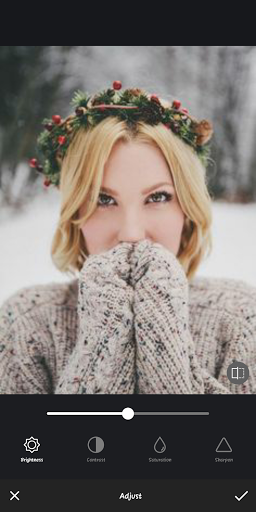 - Photo Brightness: Adjust the lightness of your photo, by adjusting Brightness, Contrast, saturation and sharpness.