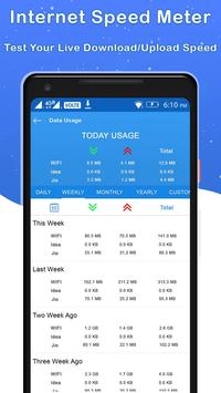Internet speed meter application shows daily data usage of last 30 days: Mobile data usage, wifi data usage,data monitoring,data traffic monitoring and application data usage since bootup. Internet Speed Meter and Data Usage free application allows you to monitor data usage for last 30 days, data usage per day and track internet speed in status bar.