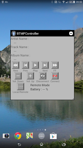 This app has two modes and one is "Local mode" and the other is "Remote mode". On the "Local mode", you can control the media player or music player which has already been installed by this application in the floating window and it can display a title of music, an artist name, an album name.