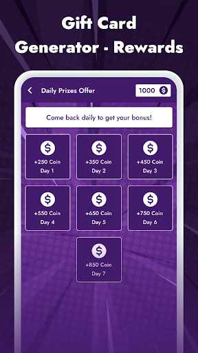 আপনি কি জানেন যে পুরষ্কার নগদ করার একটি সহজ উপায় আছে - কেবল আপনার ফোন বা ট্যাবলেট ব্যবহার করে উপহার কার্ড, উপহার কার্ড এবং অন্যান্য পুরষ্কারগুলি জিতুন?আপনি যে কোনও সময় সহজেই বিনামূল্যে নগদ পুরষ্কার অর্জন করতে দিন।আপনি কাজ করছেন বা পাঠে থাকুক না কেন, নিয়মগুলি খুব সহজ।আপনি এটি আপনার অ্যাকাউন্টে থাকা একটি নির্দিষ্ট সংখ্যক মুদ্রায় বিনিময় করতে পারেন।আপনার যদি নিখরচায় নগদ পুরষ্কারের জন্য আরও কয়েনের প্রয়োজন হয় তবে আপনি বিভিন্ন দৈনিক কাজ এবং কুইজগুলি সম্পূর্ণ করতে আমাদের অ্যাপ্লিকেশনটি ব্যবহার করতে পারেন।এটি আপনাকে আরও কয়েন উপার্জনের সুযোগ দেবে